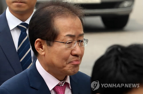 | △ 굳은 표정의 홍준표 경남도지사 (서울=연합뉴스) 최재구 기자 = '성완종 리스트'에 오른 홍준표 경남도지사가 검찰 조사를 받기 위해 8일 오전 서울 서초구 서울고등검찰청에 들어서고 있다. jjaeck9@yna.co.kr |
