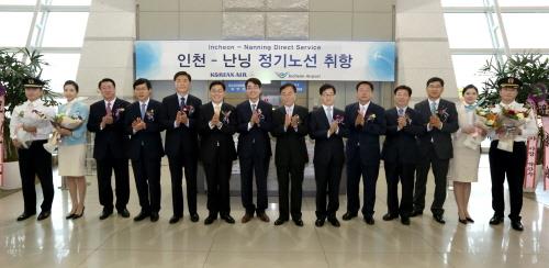 인천∼난닝 노선에는 138석 규모의 B737-800 '보잉 스카이 인테리어' 항공기가 투입되며 매주 월·수·금 오후 6시55분 인천공항을 출발해 오후 10시20분 난닝 우쉬공항에 도착한다.