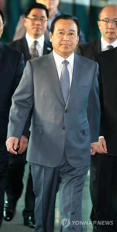 | △ 이완구 전 총리 14일 오전 10시 검찰 소환 (서울=연합뉴스) 성완종 리스트 의혹을 수사하는 검찰 특별수사팀(팀장 문무일 검사장)은 성 전 회장으로부터 금품을 받은 의혹이 제기된 이완구 전 국무총리를 14일 오전 10시에 소환해 조사한다. 사진은 지난 4월 27일 이 전 국무총리가 이임식을 위해 정부서울청사에서 별관 강당으로 향하고 있다. (연합뉴스 자료사진) |