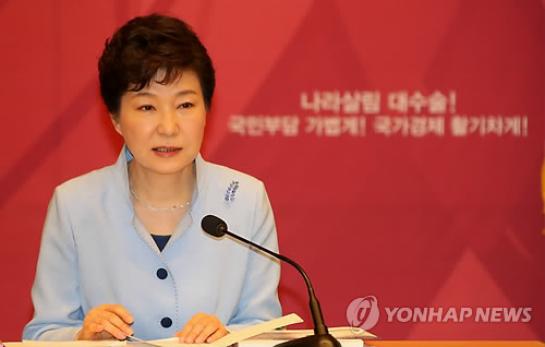 △ 박 대통령, 국가재정전략회의 발언 (서울=연합뉴스) 백승렬 기자 = 박근혜 대통령이 13일 청와대에서 열린 국가재정전략회의에서 모두발언하고 있다. 2015.5.13 srbaek@yna.co.kr