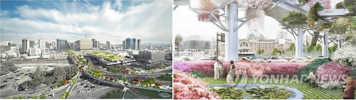 | △ 서울역고가 공원화 당선작 '서울수목원' (서울=연합뉴스) 서울역고가를 공원화하는 '서울역7017프로젝트' 국제현상설계 공모 당선작인 네덜란드 건축.조경 전문가 비니 마스의 서울수목원. 2015.5.13 << 서울시 제공 >> photo@yna.co.kr |