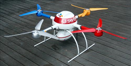 이번에 개발된 '씨제이 스카이도어(CJ SKY-DOOR)'는 3엽 날개가 장착된 로터 4개를 통해 시속 60㎞로 비행이 가능하다. 최대 비행시간은 70분에 비행 반경은 20㎞ 안팎으로 해발 4km까지 올라갈 수 있다.