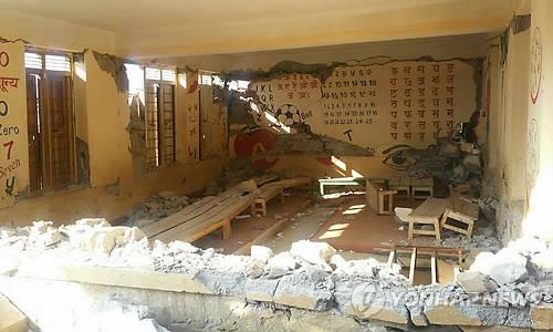 △ 지진으로 붕괴된 기아대책 협력학교인 네팔 쩐띠부미 초등학교 모습. << 기아대책 제공 >>(연합뉴스 자료사진)