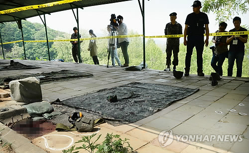 | △ 군, 총기 사건 예비군사격장 공개 (서울=연합뉴스) 임헌정 기자 = 예비군 총기 난사 사건 발생 다음 날인 14일 오후 서울 내곡동 예비군훈련장 내 사고현장인 예비군사격장을 군 관계자가 공개하고 있다. |