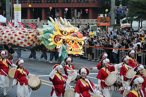 | △ 종로 수놓은 연등행렬 16일 오후 세계각국의 종교지도자들을 선두로 한 연등회 행렬이 서울 종로거리를 지나고 있다. 2015.5.16 |