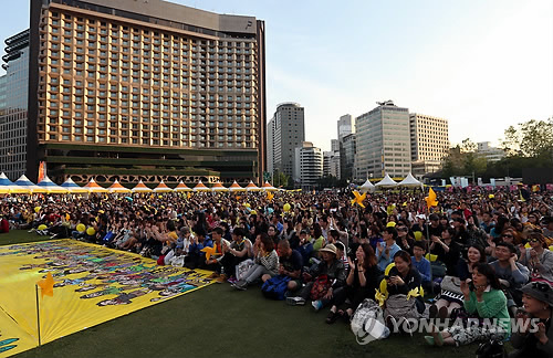 | △ 서울광장에 모인 시민들 17일 오후 서울광장에서 '5월 민주주의 시민축제, 그대에게' 문화공연 축제가 열리고 있다. 이 행사는 5.18민중항쟁서울기념사업회와 노무현재단 시민기획위원회 등이 주최했다. 2015.5.17 |