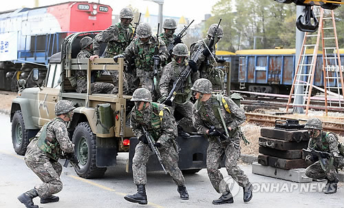 △ 충무훈련에 참가한 육군 장병들이 테러범 진압을 위해 출동하고 있다.(연합뉴스 자료사진)