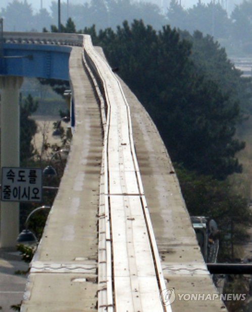 | △ (인천=연합뉴스) 인천시가 예산 800억원을 들여 2013년 준공하고도 운행하지 못하고 있는 월미은하레일의 선로. 2014.8.27 <<연합뉴스 자료사진>> inyon@yna.co.kr |