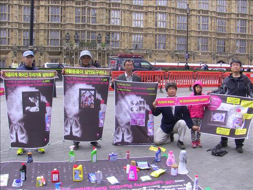피해자 가족들은 이날 오후에는 런던 국회의사당 옆에서 가습기 살균제 피해 사례를 알리는 캠페인을 벌이기도 했다.