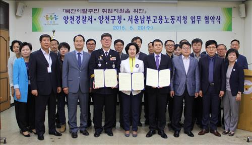 이들 기관은 탈북민의 취업정보자료를 상호교환하고 매월 첫째 주 목요일에 양천구청 별관에서 북한이탈주민 취업상담소를 운영하기로 했다.