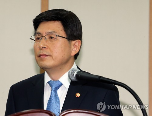 | △ 황교안 신임 국무총리 후보자 입장발표 (과천=연합뉴스) 최재구 기자 = 황교안 신임 국무총리 후보자가 21일 정부 과천청사에서 총리 후보 지명과 관련한 입장발표를 하고 있다. |