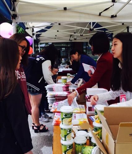 | △ 식품업체가 대학생들을 대상으로 제품 시식.홍보행사를 하는 모습. |