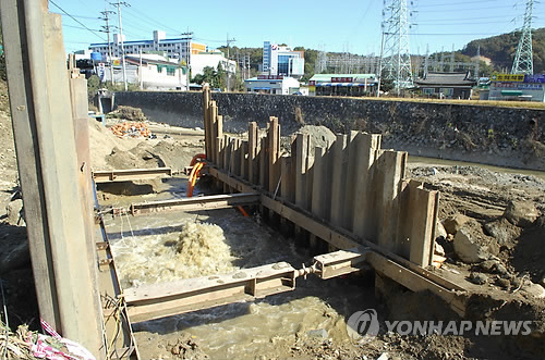 | △ 파손된 광역상수도관에서 물이 콸콸 나오고 있다 (연합뉴스 자료사진) |