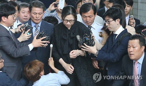 | △ 법원 떠나는 조현아 (서울=연합뉴스) 황광모 기자 = '땅콩회항' 사건으로 항소심에서 징역 10월에 집행유예 2년을 선고받고 석방된 조현아 전 대한항공 부사장이 22일 서울 서초동 서울고법에서 나오고 있다. |