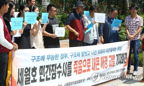 (서울=연합뉴스) 김동규 기자 = 세월호 유가족 등으로 구성된 416연대가 희생자 수색 중 숨진 민간잠수사 사인을 부실하게 수사했다며 전 해경 간부들을 검찰에 고발했다.