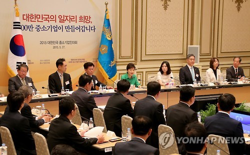 1부 행사로 마련된 '일자리 창출을 위한 중소기업인과의 대화'에서는 박근혜 대통령이 일자리 창출과 관련한 현장의 애로사항을 청취하고 개선방안을 논의했다.