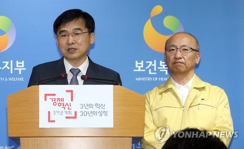 | △ 메르스 관련 브리핑 (세종=연합뉴스) 배재만 기자 = 김우주 대한감염학회 이사장(왼쪽)이 2일 오후 정부세종청사 공용브리핑룸에서 메르스와 관련한 기자들의 질문에 답하고 있다. 오른쪽은 문형표 보건복지부 장관. |