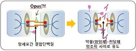 오퍼스가 암세포 간의 결합물질을 끊어주면 새 항암제가 암 조직 내부로 깊이 침투해 치료 효과를 극대화할 수 있을 것이라는 게 삼양바이오팜의 설명이다.