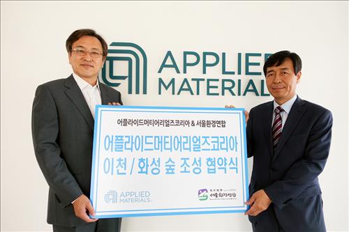 (사울=연합뉴스) 박대한 기자 = 반도체 및 평판 디스플레이 장비업체인 어플라이드머티어리얼즈코리아는 협약식을 갖고 서울환경연합에 숲 조성을 위한 기부금 5천만원을 전달했다고 4일 밝혔다.
