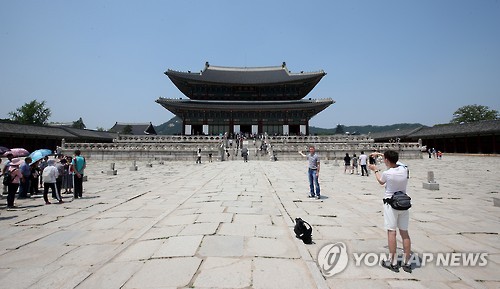 | △ 메르스 여파 한산한 고궁 (서울=연합뉴스) 황광모 기자 = 정부의 메르스에 대한 종합 대책이 발표된 7일 오후 서울 경복궁 근정전 일대가 한산한 모습이다. 이날 경복궁에는 메르스 감염을 우려한 시민들의 방문이 크게 줄고, 외국인 관광객들만 관람하는 모습만 볼 수 있었다. hkmpooh@yna.co.kr |