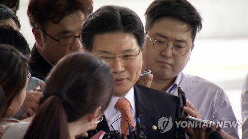 | △ 검찰 출석하는 홍문종 의원 (서울=연합뉴스) 고(故) 성완종 전 경남기업 회장으로부터 2억 원의 불법 정치자금을 받은 의혹을 받고 있는 새누리당 홍문종 의원이 8일 오후 서울 서초구 서초동 서울고등검찰청으로 출석하며 취재진의 질문에 답하고 있다. << 뉴스Y >> photo@yna.co.kr |