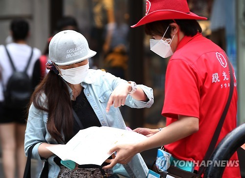하지만 명동 거리 한복판에 나와 손님을 이끄는 화장품 매장 직원들 역시 평소처럼 큰 목소리로 손님들을 부르고 있었다.
