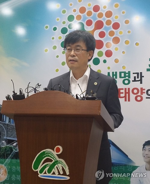 | △ 메르스 확진 브리핑하는 충북도 보건복지국장 (청주=연합뉴스) 심규석 기자 = 오진섭 충북도 보건복지국장이 9일 도청 브리핑룸에서 도내 거주자 중 증동호흡기증후군(메르스) 확진 환자가 발생했다고 브리핑하고 있다. 2015.6.9 ks@yna.co.kr |