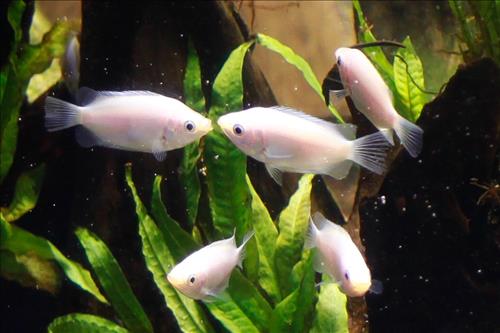 키싱구라미는 같은 종 또는 수조 유리에 키스를 하는 것으로 유명하다고 한화리조트는 설명했다.
