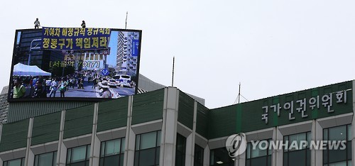 "정규직화하라"…기아차 비정규직 인권위 광고탑서 고공농성