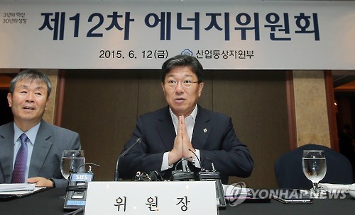 | △ 고리 1호기 운명 (서울=연합뉴스) 이정훈 기자 = 윤상직 산업통상자원부 장관이 12일 오후 서울 중구 롯데호텔에서 고리 원전 1호기의 가동 중단 여부 결정을 위해 열린 제12차 에너지위원회에 앞서 참석자들과 인사말을 나누고 있다. |