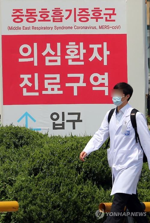 | △ 의심환자진료구역 지나는 관계자 (서울=연합뉴스) 최재구 기자 = 메르스 확진 환자가 늘어난 12일 서울 시내 한병원에 설치된 의심환자진료구역 앞으로 병원 관계자가 지나고 있다. 2015.6.12 jjaeck9@yna.co.kr |