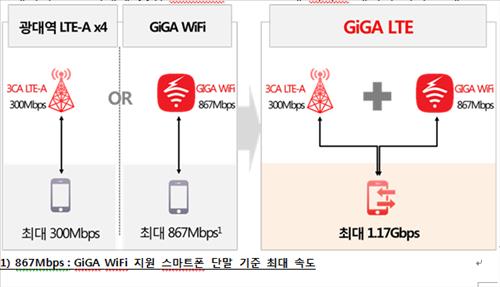 KT는 3CA LTE와 기가 와이파이를 하나의 통신망처럼 묶어 기존 LTE보다 15배, 3CA보다 4배 빠른 최대 1.17Gbps의 속도를 낼 수 있는 기가 LTE 서비스를 상용화해 5세대(5G) 이동통신 시대 실현을 위한 교두보를 확보했다고 15일 밝혔다.