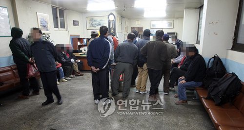 | △ 일자리를 구하려는 일용직 근로자들로 붐비는 인력개발 사무실.(연합뉴스 자료사진) |