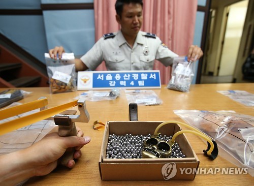 A씨는 인터넷의 한 새총 카페에 가입해 다른 회원에게서 새총을 사고 쇠구슬을 공동으로 구매, 회원들과 한강공원 등지에서 사격 연습을 해온 것으로 조사됐다.