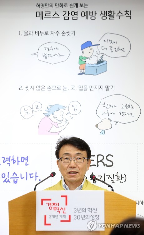 △ 권덕철 총괄반장, '오늘은' (세종=연합뉴스) 배재만 기자 = 권덕철 중앙메르스관리대책본부 총괄반장이 18일 오전 정부세종청사 보건복지부 공용브리핑룸에서 열린 중동호흡기증후군(메르스) 정례 브리핑에서 메르스 현황에 대해 설명하고 있다. 2015.6.18 scoop@yna.co.kr http://blog.yonhapnews.co.kr/f6464