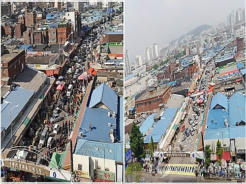 | △ (서울=연합뉴스) 동대문경찰서가 경동시장 내부로 개선 공사를 한 전후의 모습<<동대문경찰서 제공>> 거리 |