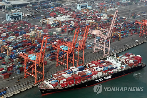 △ 우리나라 수출의 관문 부산항 부두의 모습. <연합뉴스 DB>