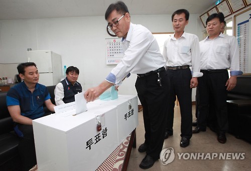 | △ 서울버스노조 총파업 찬반투표 (서울=연합뉴스) 서명곤 기자 = 23일 오후 서울 강서구 방화동 김포교통에서 전국자동차노동조합연맹 서울시버스노조 조합원들이 총파업 찬반 투표를 하고 있다. 서울시 버스노동조합은 임금인상과 정년 연장 등 요구가 받아들여지지 않으면 25일부터 전면파업에 들어가겠다고 밝혔다. |