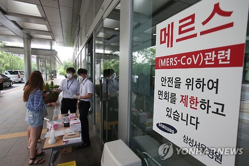 | △ 부분폐쇄 연장? 부분폐쇄 해제? (서울=연합뉴스) 황광모 기자 = 중동호흡기증후군(메르스) 감염자 발생으로 부분 폐쇄된 서울 일원동 삼성서울병원에서 23일 오후 병원 관계자들이 출입자들의 체온을 점검하고 있다. 삼성서울병원은 24일까지 부분폐쇄 해제가 예정 돼 있지만 삼성서울병원과 관련된 메르스 환자가 계속 나오고 있어 부분폐쇄 해제에 대한 경례론도 적지 않은 상황이다. |