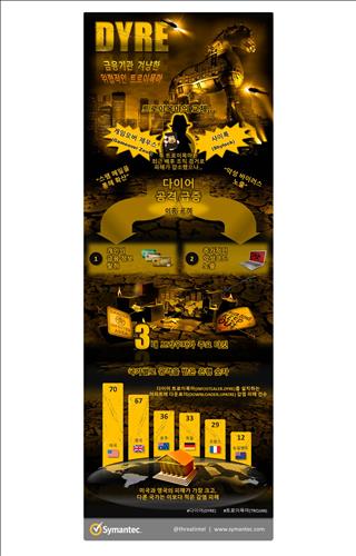 24일 보안업체 시만텍에 따르면 지난해 등장한 다이어 트로이목마는 미국, 영국 등 영어권 국가를 중심으로 전 세계 1천개가 넘는 은행과 기업을 위협하고 있다.