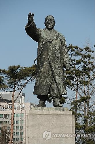 (서울=연합뉴스) 이정현 기자 = 1969년 9월 서울 남산공원에 세워진 백범 김구 선생의 동상은 광복 70주년임을 무색하게 할 만큼 오물과 부식에 시달리고 있다.