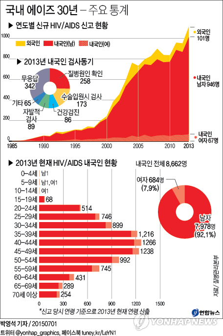 <※ 편집자주 = 올해부터 30년전인 1985년 6월 국내에서 처음으로 에이즈 환자가 발생했습니다. 당시만해도 에이즈는 '20세기 흑사병'으로 여겨질 정도로 무섭게 다가왔습니다. 하지만 30년이 지난 지금 에이즈는 고혈압이나 당뇨병처럼 수많은 만성질환 가운데 하나로 여겨집니다. 그만큼 관리가 가능해졌기 때문입니다. 실제로 국내 첫 에이즈 환자로 등록된 A씨는 보건당국의 확인 결과, 현재도 건강을 유지하고 있는 것으로 나타났습니다. 국내첫 에이즈 환자 발생 30년을 맞아 국내 에이즈 발생 추이와 치료양상, 에이즈에 대한 오해와 진실, 에이즈 환자 인터뷰 등을 담은 기획물 3꼭지를 일괄 송고합니다.>
