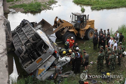 △ 중국 연수를 떠난 행정자치부 소속 지방행정연수원 교육생을 태운 버스가 다리에서 추락했다.(연합뉴스 자료사진)