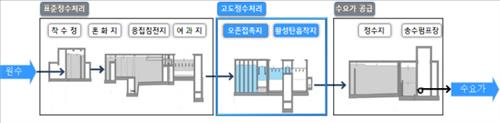 고도정수처리시설은 기존 정수처리 공정에 오존소독과 숯(입상활성탄)으로 한 번 더 걸러주는 공정을 추가한 것이다. 최근 확산된 조류로 인해 발생하는 흙 곰팡이 냄새 유발물질과 소독부산물 등 미량의 유기물질을 효과적으로 처리할 수 있다.
