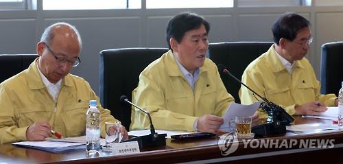 | △ (세종=연합뉴스) 배재만 기자 = 최경환 국무총리 직무대행이 10일 오전 정부세종청사 1동 중회의실에서 열린 '중동호흡기증후군(메르스) 대응 지자체 단체장 간담회'에서 모두 발언을 하고 있다. 왼쪽은 문형표 보건복지부 장관, 오른쪽은 박원순 서울시장. 2015.6.10 |
