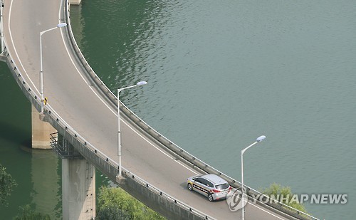 | △ 녹조 지속 (서울=연합뉴스) 이정훈 기자 = 한강 상류 강동대교∼잠실대교 구간에 조류주의보가 발령된 7일 서울시 광진구 올림픽대교 일대 한강에 초록빛이 감돌고 있다. 한강에서는 지난달 30일 잠실수중보 하류 양화∼행주대교 구간에 처음으로 조류경보가 발령된 뒤 점차 상류 쪽으로 경보 구간이 확대되고 있다. |