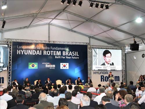 | △ 지난 4월 5일 브라질 상파울루주 아라라꽈라시에서 개최된 현대로템 브라질 공장 착공식.현대로템 제공. |