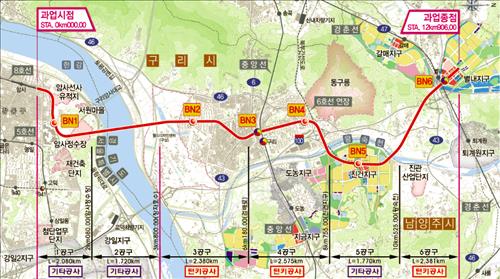 서울시는 암사동과 가장 어려운 공정인 한강 하부를 지하로 통과해 구리시 토평동까지 연결하는 3.8km 구간의 토목, 궤도, 건축, 정거장 전기와 기계 설비를 맡는다.