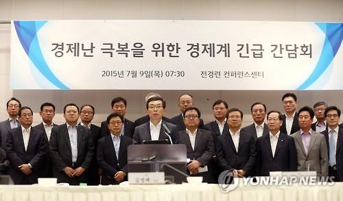 ◇ 위기 극복을 위한 긴급 간담회 = 30대 그룹 사장단은 9일 중동호흡기증후군(메르스) 등으로 인한 내수침체로 경기부진이 지속되는 상황에서 "기업가 정신을 바탕으로 경제위기 극복에 앞장서겠다"고 밝혔다.