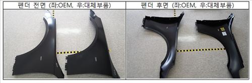 협회 설명에 따르면 BMW 530i 모델 기준으로 BMW 딜러가 취급하는 OEM 펜더 가격은 44만8천300원이지만 대체부품은 21만8천650원으로 반값 수준이다.